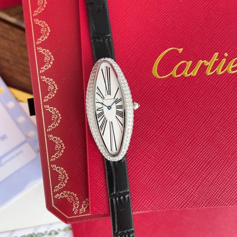 The iconic Roman scale is matched with the tempered blue steel hands. The elongated medium size is elegant and powerful. It is the most popular neutral proportion in the Baignoire series. It is not picky about gender or personality. In particular, the new black case with three colors is personalized and fashionable, giving this work a unique modern language. The curved case is matched with soft Italian calfskin and arched sapphire mirror, which fits the wrist curve perfectly. The frosted dial and elongated case, the oval philosophy of softness and power collision, are very eye-catching. While the old money style and vintage style, it perfectly integrates the style of Cartier watches