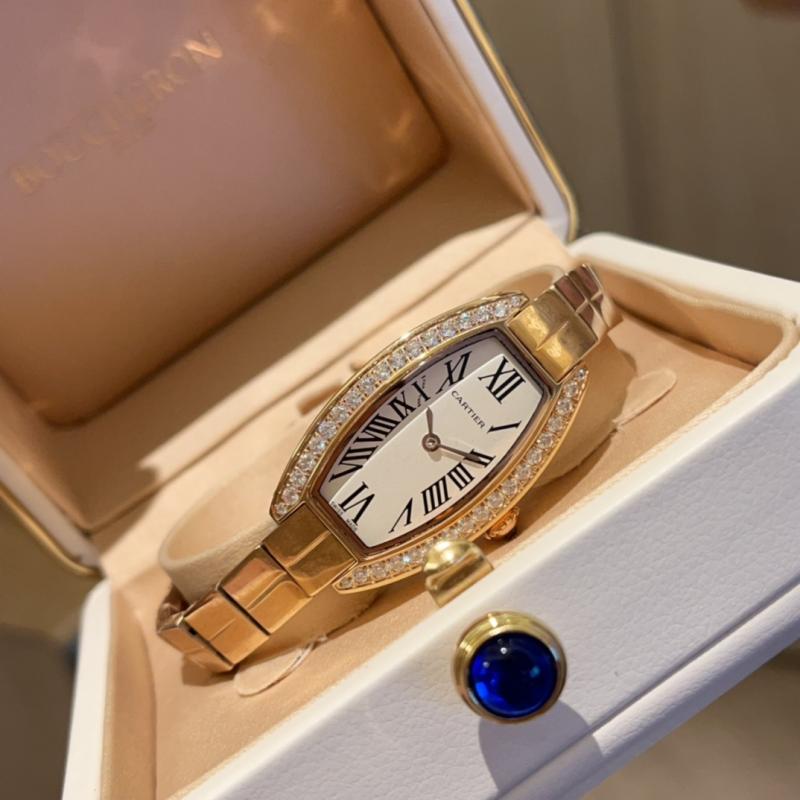 Leading the style, transcending the times, design and exquisite extraordinary craftsmanship, it is favored by all walks of life. The watch adopts the perfect fusion of two different artistic styles of bracelet and watch! It shows the soft and elegant charm and becomes a model of Cartier! Mini watch, upgraded hardcover C1Ct163 imported Swiss quartz movement. Stainless steel case and bracelet. The crown is inlaid with a white synthetic spinel. Silver-plated dial, sword-shaped blue steel pointer!
