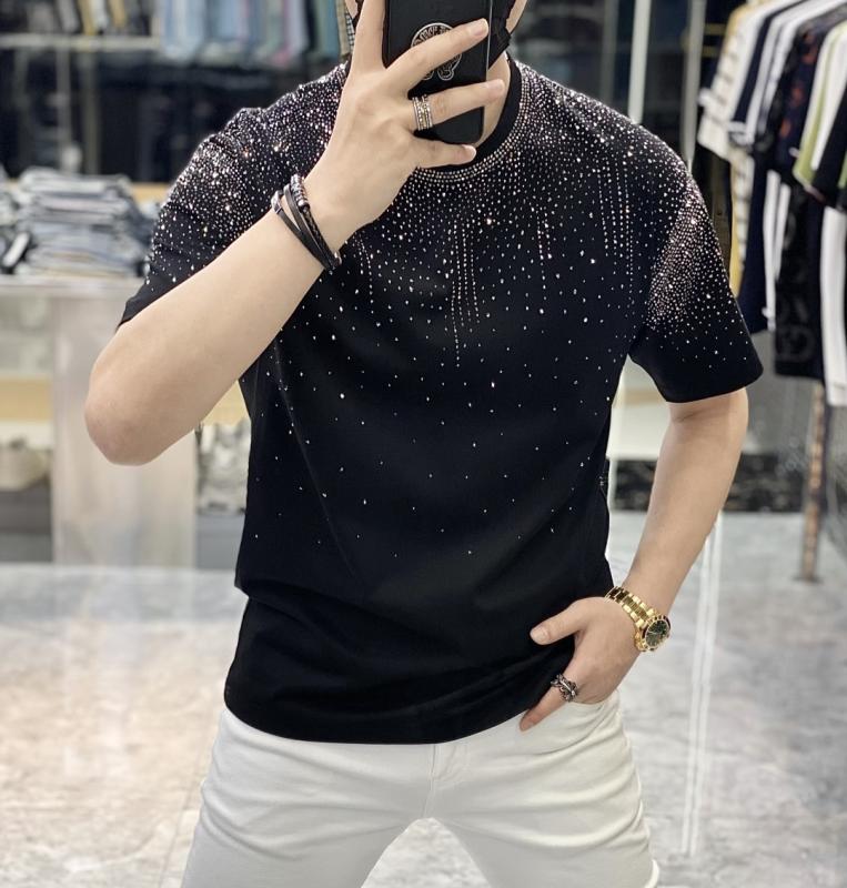 Givenchy spring and summer boutique full diamond short-sleeved T-shirt, synchronized with the official website, high-end quality, customized top mercerized cotton fabric, 1:1 production by top manufacturers, fashion brand heavy craftsmanship logo design, soft and delicate to the touch, skin-friendly and comfortable to wear, versatile and casual, looks great on the upper body, handsome, a must-have for trendy men, size: M-3XL, can be worn by up to 190 pounds!