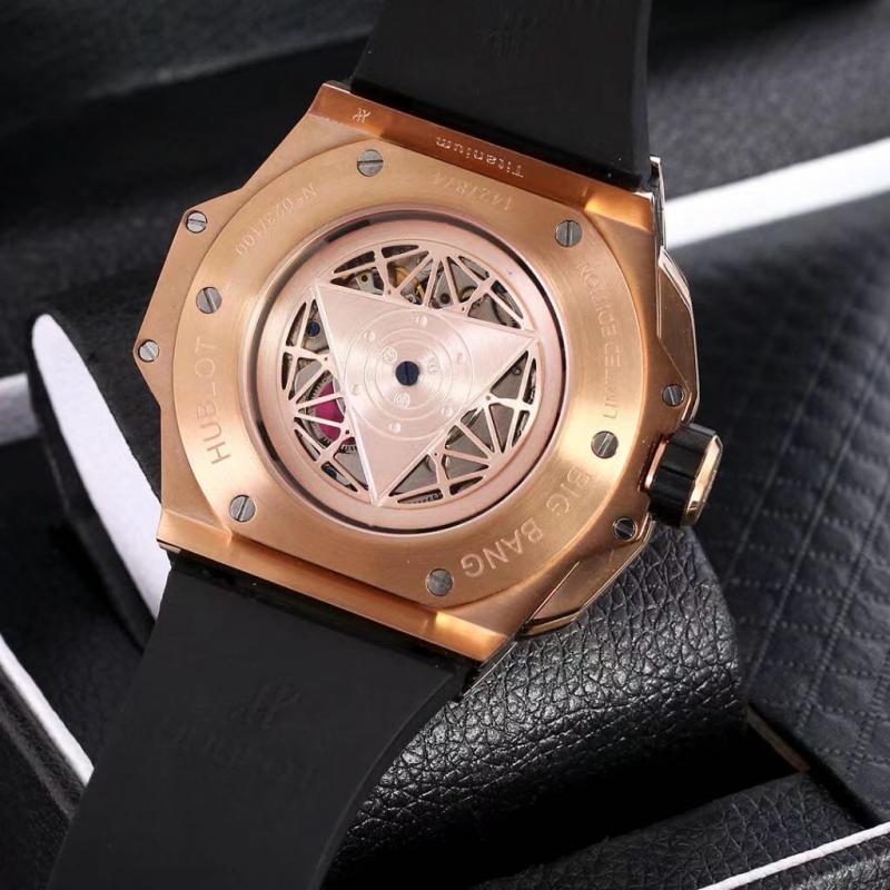 The case is made of up to 12 ceramic materials. After polishing, satin, slicing, engraving, chamfering and faceting, it presents alternating hexagons, diamonds and triangles, creating a harmonious and charming visual effect. It is equipped with a custom-made Hublot 3836 fully automatic flyback chronograph movement, the only 4.5-position hollow calendar ring and window in the industry, and the original half-tooth crown tattoo logo is always upward.