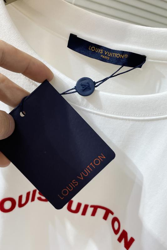 Louis Vuitton V red letter logo flocking print white short-sleeved tee