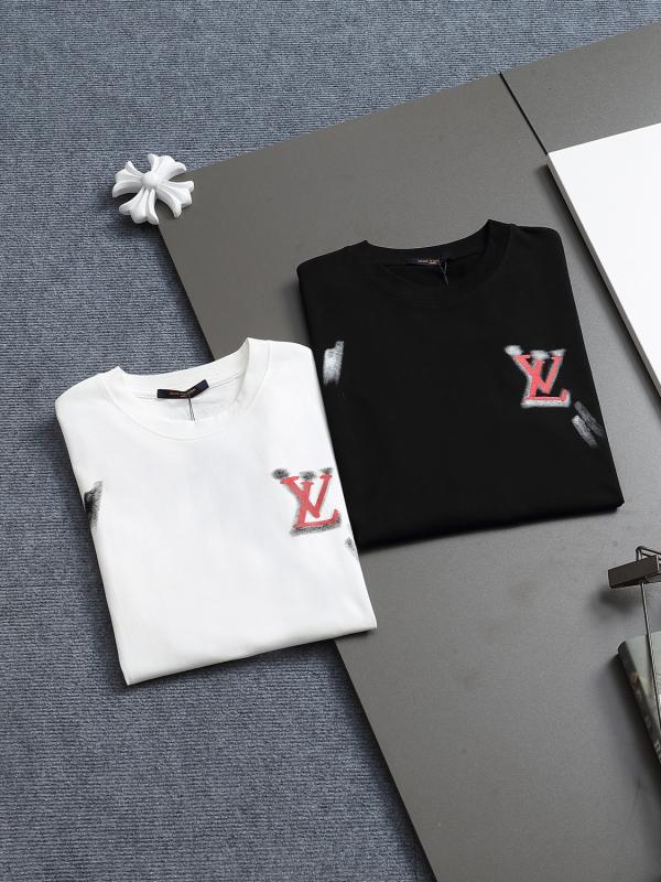 25SS 1V New counter catwalk model Full-print gradient inkjet large logo short-sleeved T-shirt, the same style for men and women! Short sleeves are not the same as the masses, but must be unique and eye-catching. This LV short-sleeved shirt has good quality, comfort, consistent style, fashion, including fabrics and cutting technology, all of which have been worked hard! 270 grams of washed pure cotton fabric, pure cotton is breathable, very refreshing and comfortable to wear for daily wear, the ribbed knitting at the neckline is flat and tight, and the neckline will not be crooked no matter how you toss it, and the loose version, you will find that it looks really good when you put it on, the overall minimalist and neat, super daily and versatile! Just match it with a pair of pants to look youthful, and a T-shirt can make your outfit crazy, a fashionable item that will never go wrong! Black, White, Size: XS-L