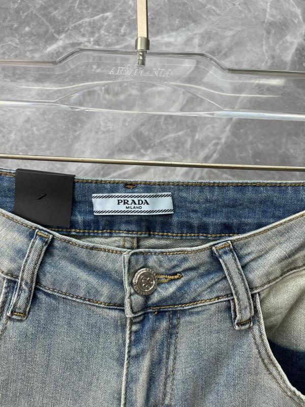 Prada new men’s jeans. Comfortable and elastic fabric. Exclusive sale. Fashionable and elegant. Crafted with high quality. Made with original yeast washing process. Selected imported heavy denim fabric. Customized hardware decoration. Genuine leather brand. Exquisite stitching. All the fine workmanship makes the whole pair of pants even better. Worth having. Size: 28-38, shipped the next day