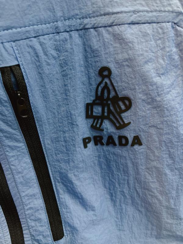 Prada’s new spring and summer men’s sun protection clothing is a lightweight jacket with a unique custom sun protection technology fabric, combined with a cool coating that makes the body feel cool and not stuffy, and dries quickly after sweating, making it suitable for outdoor activities in summer. Lightweight and breathable, highly comfortable, ultra-light and portable, it can be folded into the size of a palm and stored in its own pocket, so you can carry it with you without burden. It can cope with light rain or humid environments at the seaside, and at the same time has basic windproof performance, suitable for changeable outdoor weather. The zipper pocket is convenient for storing small items; the cuffs are elastic and adjustable, and the hem drawstring enhances the fit to prevent the jacket from shifting during activities. It is both fashionable and practical, simple and versatile, with neat tailoring, and provides solid color, gradient color or contrasting color design to meet the needs of daily commuting, sports and leisure scenes. The same style for men and women, neutral version design, suitable for different body shapes, and multiple size options are available to improve wearing tolerance. The sun protection jacket not only has professional sun protection function, but also becomes a must-have item for outdoor protection and fashion wear in summer through lightweight materials, humanized details and trendy design.