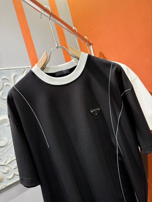 Prada top quality 2025 new short sleeves! Selected top original fabrics, soft to the touch. Top imported private goods, fashionable design trendy short sleeves, luxurious quality is unquestionable. The effect on the body is super good, the same style as the luxury official website! Size: M-3XL